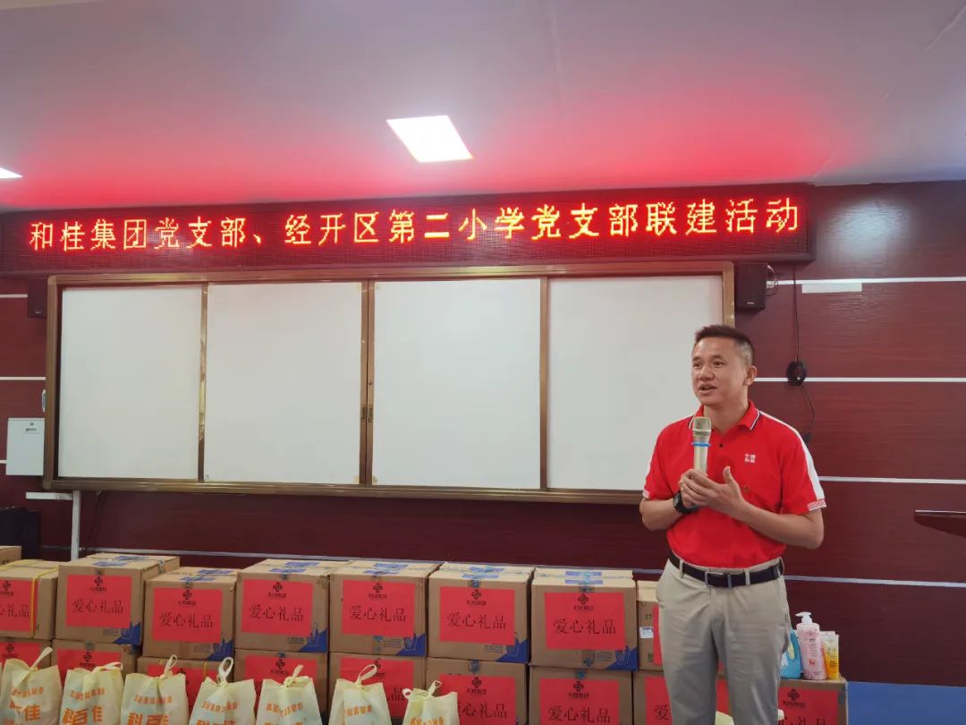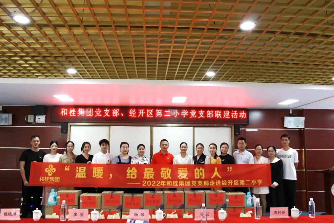 經開區(qū)環(huán)衛(wèi)站慰問活動結束后,和桂集團黨支部一行又來到經開區(qū)第二小學開展慰問。經開區(qū)第二小學黨支部書記、校長楊琴攜校方領導熱情接待。校方對和桂集團開展的慰問工作表示感謝和高度贊揚,并代表學校領導班子向大家承諾:學校會盡心盡力辦好教育,為學生服務,為社會服務。