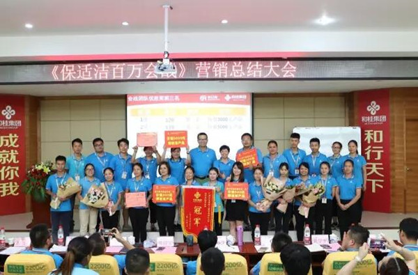 在8月14日的總結(jié)、頒獎會上,和桂集團總裁黃偉文對本次保適潔百萬會戰(zhàn)予以高度評價,并為獲獎團隊、個人進行頒獎。第二組輝煌隊,助教汪翠珍,組長蔣麗蓉,組員楊毅獲得個人內(nèi)購單產(chǎn)排名第一,團隊以舍我其誰的氣勢,力壓群雄,勇奪會戰(zhàn)團隊冠軍。