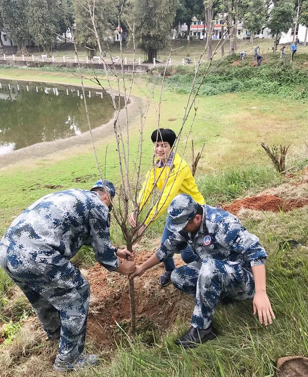 情深意切魚水情,軍民團(tuán)結(jié)一家親;活動(dòng)現(xiàn)場,和桂的家人們和官兵們一起揮鍬挖坑、修枝、扶樹、掩土、填上草皮、澆水……,大家個(gè)個(gè)熱情高漲、干勁十足,兩三人一組,團(tuán)結(jié)互助,配合默契,有條不紊,到處一片熱火朝天的勞動(dòng)場景。眾人齊心效率高,眾人拾柴火焰高,轉(zhuǎn)眼間,一棵棵樹苗錯(cuò)落有致、迎風(fēng)挺立,讓營地?zé)òl(fā)勃勃生機(jī),在陽光中奏響了綠色的希望。