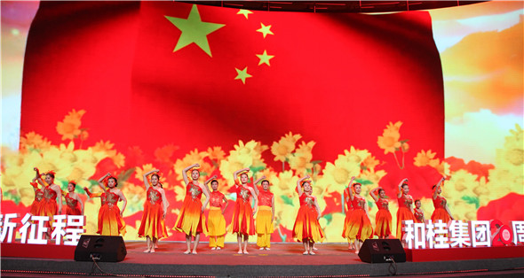 隨后,和桂集團(tuán)及旗下子公司,為千位嘉賓呈現(xiàn)了一場(chǎng)視聽盛宴。和桂集團(tuán)與源生堂的大型舞蹈節(jié)目《奮斗——以青春的名義》拉開晚宴序幕,商場(chǎng)事業(yè)部與團(tuán)購(gòu)團(tuán)隊(duì),將走秀與舞蹈結(jié)合的《盛世歡歌》,巧妙地將傳統(tǒng)文化與現(xiàn)代化元素融合在一起?!肚赝觞c(diǎn)兵》、《精忠報(bào)國(guó)》、《驕傲的女孩》等節(jié)目,以持續(xù)創(chuàng)新奮斗的精神,向和桂集團(tuán)獻(xiàn)禮。