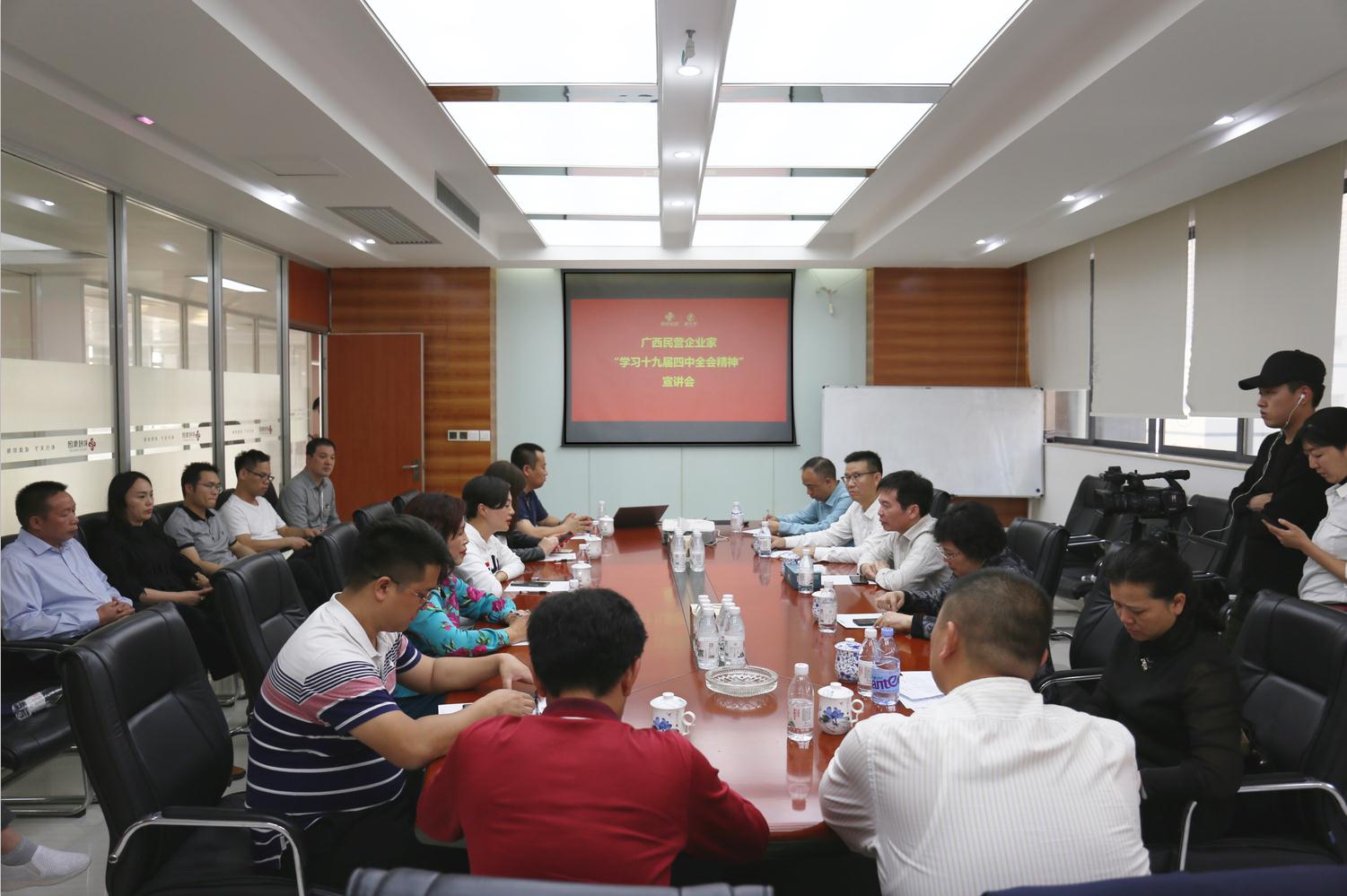 11月23日,廣西自治區(qū)黨委統(tǒng)戰(zhàn)部副部長、工商聯(lián)黨組書記熊春寒同志,率領(lǐng)廣西民營企業(yè)家學(xué)習貫徹黨的十九屆四中全會精神宣講團一行30人到和桂集團開展宣講活動,和桂集團總裁黃偉文攜集團高管進行了熱情接待。