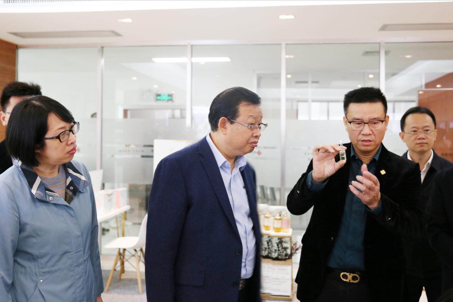 在和桂源生堂與廣西中醫(yī)藥大學(xué)共建的聯(lián)合研發(fā)實驗室,廣西中醫(yī)藥大學(xué)譚強教授向李彬副主席詳細匯報了廣西中醫(yī)藥大學(xué)與和桂源生堂合作聯(lián)合研發(fā)中心的科研成果和方向。李彬副主席著重強調(diào),和桂源生堂作為廣西化妝品行業(yè)的龍頭企業(yè),與廣西中醫(yī)藥大學(xué)開創(chuàng)的校企聯(lián)研模式值得推廣,要持續(xù)做好產(chǎn)品質(zhì)量管理工作,為打響廣西品牌,走向全國作出貢獻。