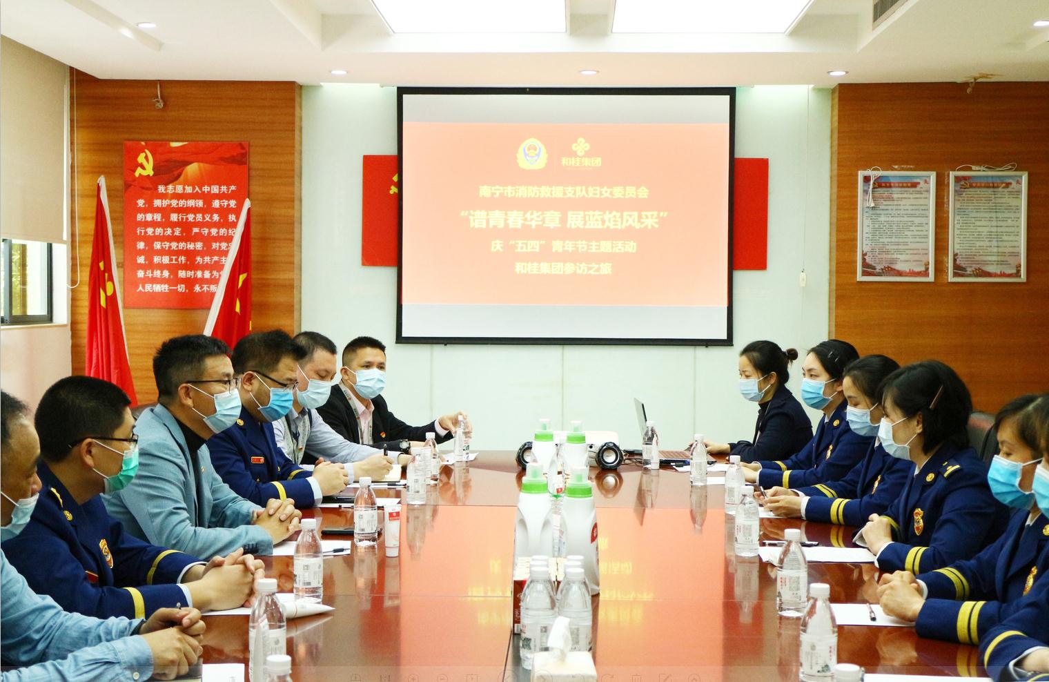 4月26日,南寧市消防救援支隊(duì)婦女委員會(huì)主任、戰(zhàn)勤保障處處長(zhǎng)莫曉漪一行參訪和桂集團(tuán),舉行“譜青春華章·展藍(lán)焰風(fēng)采”·慶“五四”青年節(jié)主題活動(dòng)。和桂集團(tuán)總裁黃偉文,攜集團(tuán)高管進(jìn)行了接待。南寧市消防救援支隊(duì)婦女委員會(huì)副主任、青秀區(qū)消防救援大隊(duì)政治教導(dǎo)員劉曉玫,經(jīng)開(kāi)區(qū)消防救援大隊(duì)詹寧大隊(duì)長(zhǎng)、經(jīng)開(kāi)區(qū)消防救援大隊(duì)政治教導(dǎo)員張濱成陪同參訪。