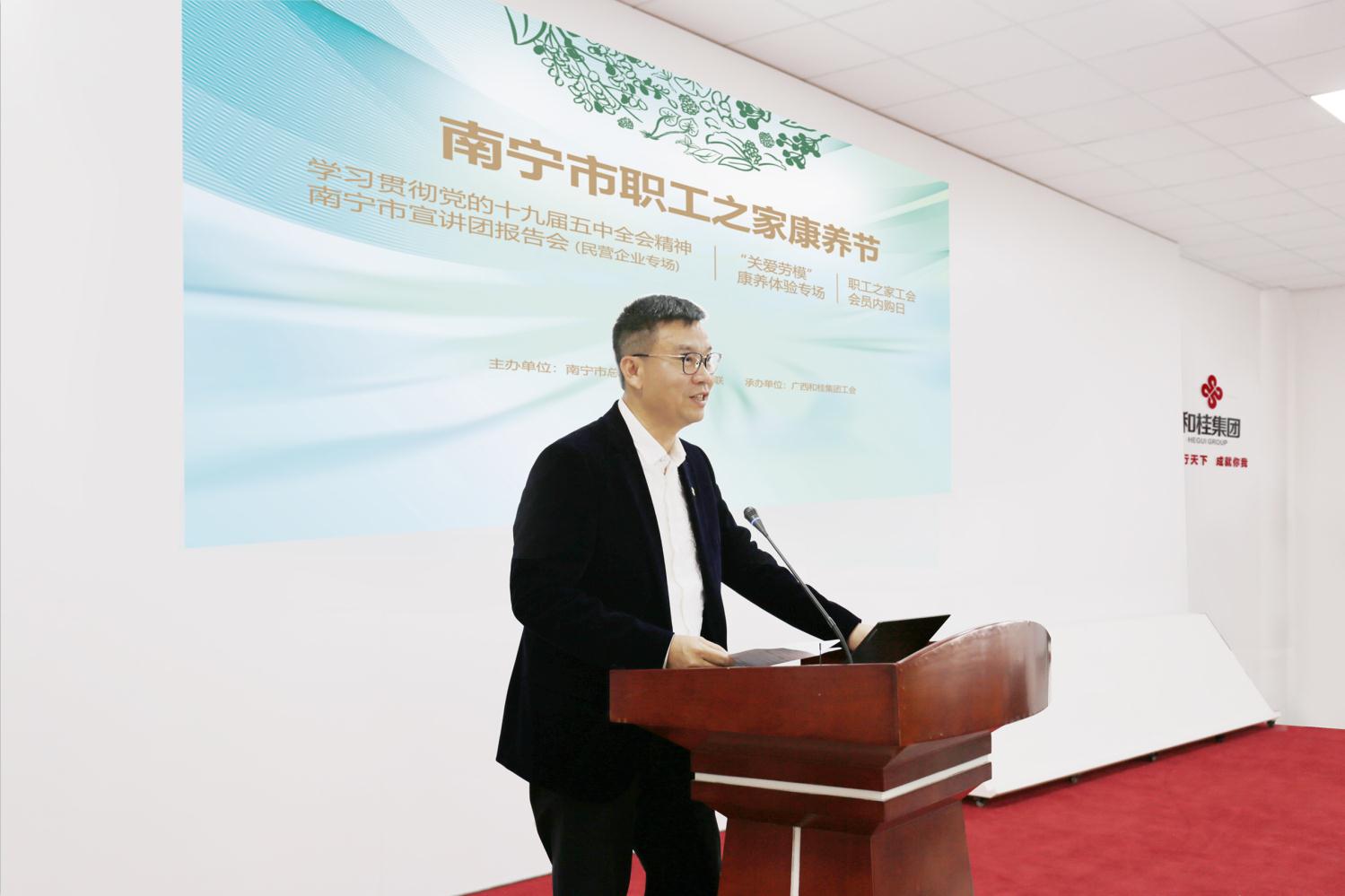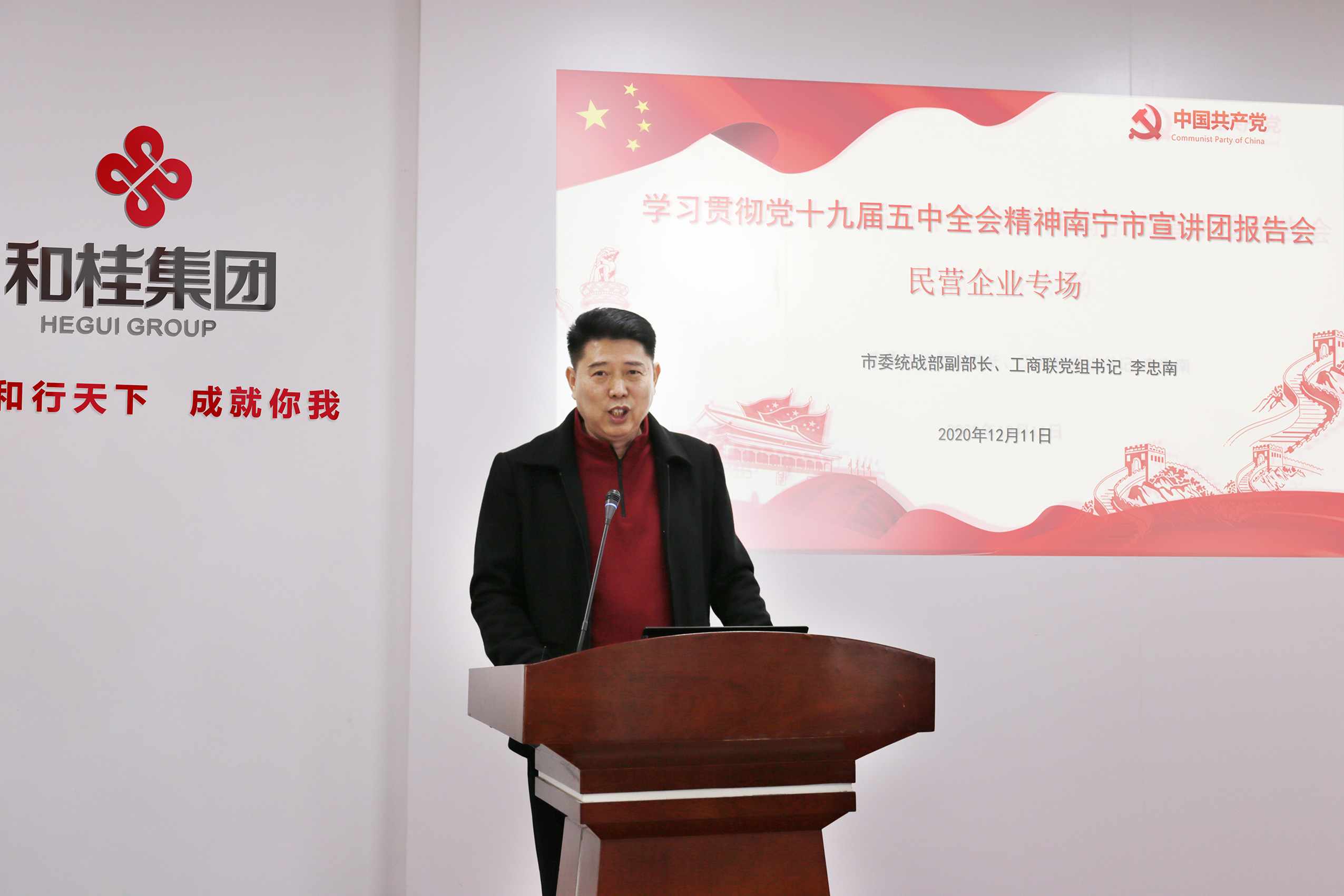 南寧市委統(tǒng)戰(zhàn)部副部長(zhǎng)、市工商聯(lián)黨組書記李忠南宣講黨的十九屆五中全會(huì)精神