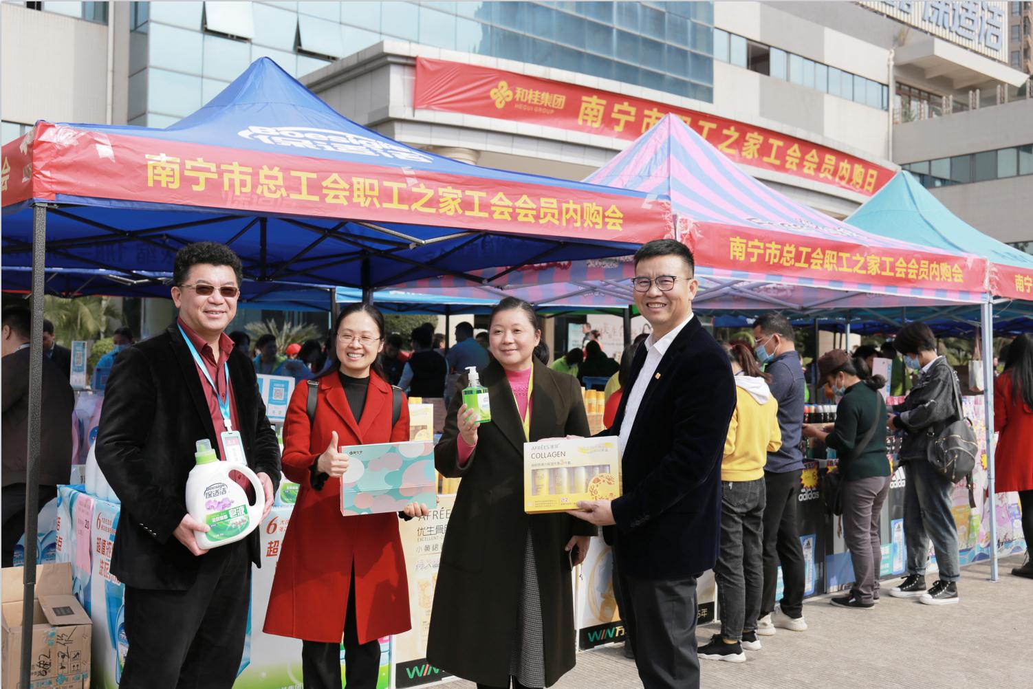 當(dāng)日,南寧市職工之家工會(huì)會(huì)員內(nèi)購(gòu)會(huì)在和桂集團(tuán)前廣場(chǎng)同期盛大舉行。