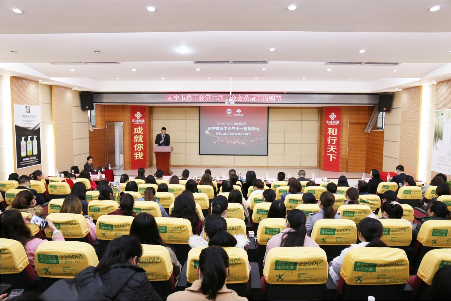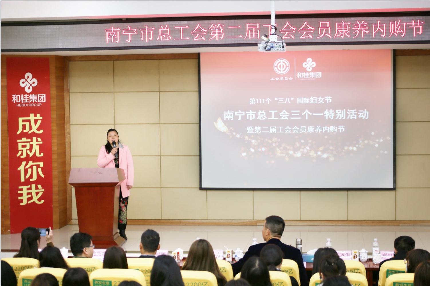 在第111個“三八”國際婦女節(jié)到來之際,為進一步激發(fā)全市女職工愛崗敬業(yè)、銳意進取的工作熱情,充分發(fā)揮“半邊天”的作用,3月5日,南寧市總工會走進和桂集團,開展“三個一”特別活動,通過“一場權(quán)益講座”“一場康養(yǎng)講座”“一個內(nèi)購節(jié)”,與南寧市基層工會的女職工共慶節(jié)日,致敬了不起的綠城巾幗!