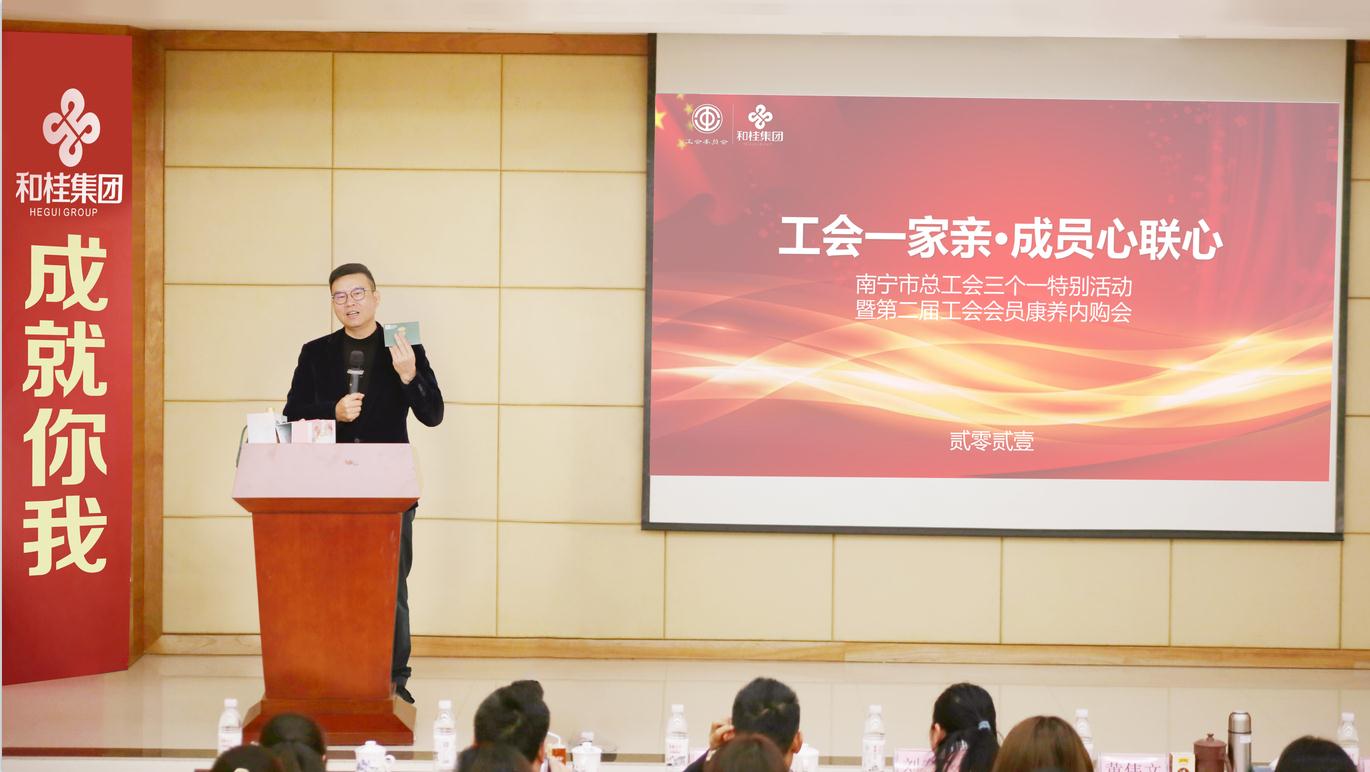 和桂集團總裁黃偉文表示,和桂集團在供應(yīng)鏈和康養(yǎng)領(lǐng)域具有領(lǐng)先優(yōu)勢,在南寧市總工會的指導(dǎo)下,集團工會積極創(chuàng)新,服務(wù)得到很大提升。希望與各級工會系統(tǒng)加強交流合作,普惠職工,讓廣大職工享受到健康的生活方式,在個人及家庭日常消費上也能享受到真正的實惠。
