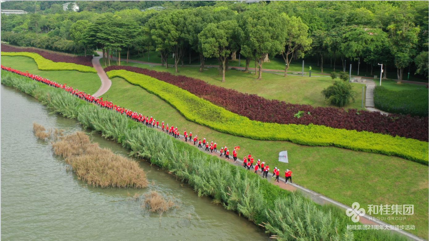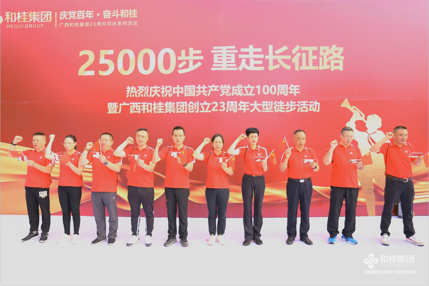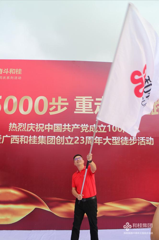 在建黨100周年之際,和桂集團喜迎創(chuàng)立23周年司慶。6月26日,“25000步·重走長征路”2021和桂集團23周年司慶徒步活動盛大舉行。和桂集團董事長黃偉文,攜300名和桂家人集結(jié)邕江河畔,用一場酣暢淋漓的25000步徒步之旅,傳承長征精神,凝聚奮進力量。