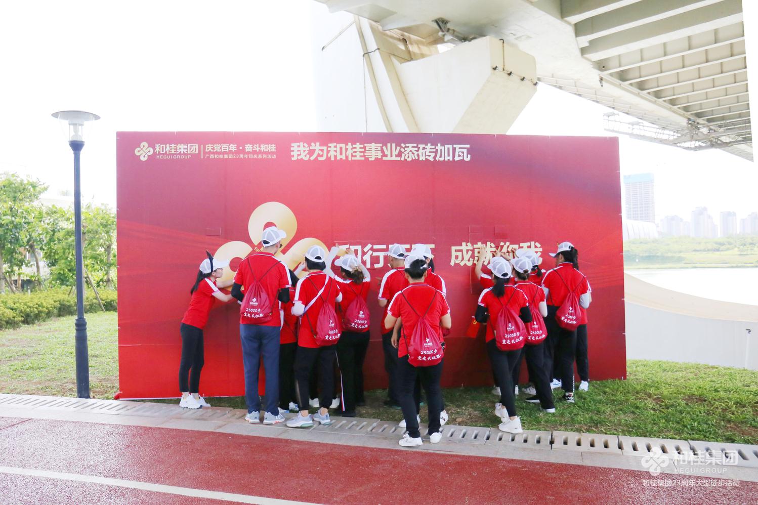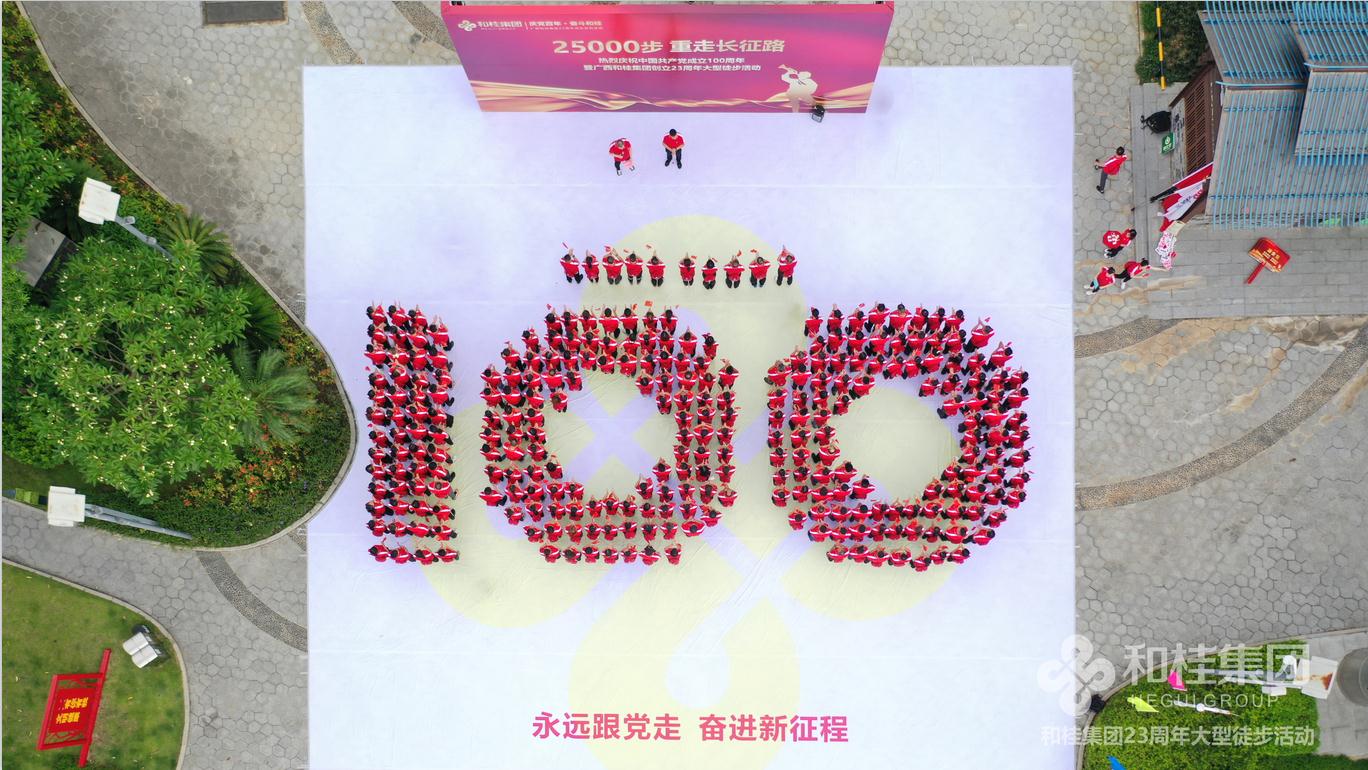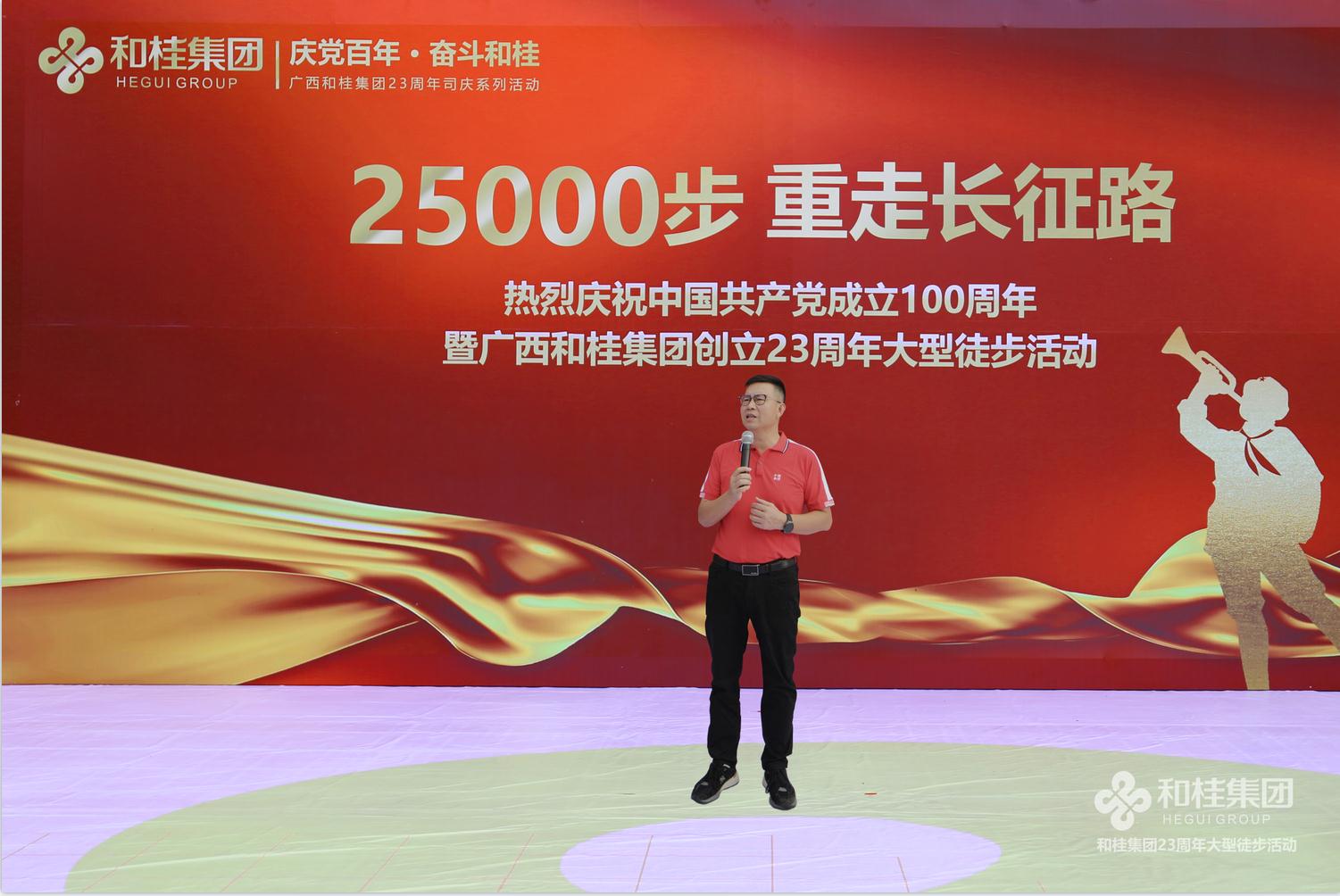 在建黨100周年之際,和桂集團喜迎創(chuàng)立23周年司慶。6月26日,“25000步·重走長征路”2021和桂集團23周年司慶徒步活動盛大舉行。和桂集團董事長黃偉文,攜300名和桂家人集結(jié)邕江河畔,用一場酣暢淋漓的25000步徒步之旅,傳承長征精神,凝聚奮進力量。