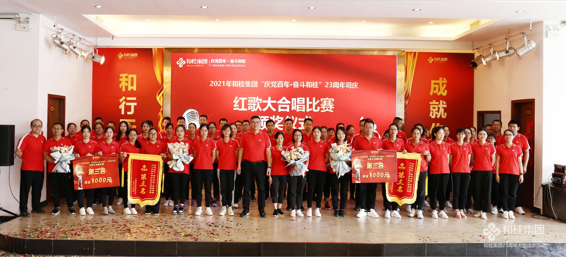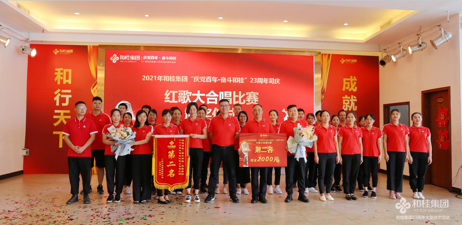司慶活動在一首高亢有力的大合唱《團結(jié)就是力量》歌聲中圓滿結(jié)束,和桂集團23年奮斗歷程始終如一,團結(jié)一心,眾志成城,一步一個腳印創(chuàng)造一個個奇跡。奮進新起點,踏上新征程,和桂集團將繼續(xù)秉承“誠信、創(chuàng)新、感恩、共贏”的企業(yè)價值觀,堅持黨旗領(lǐng)航,實干興企,以慶黨百年為起點,齊心奮斗,打造百年和桂砥礪前行!