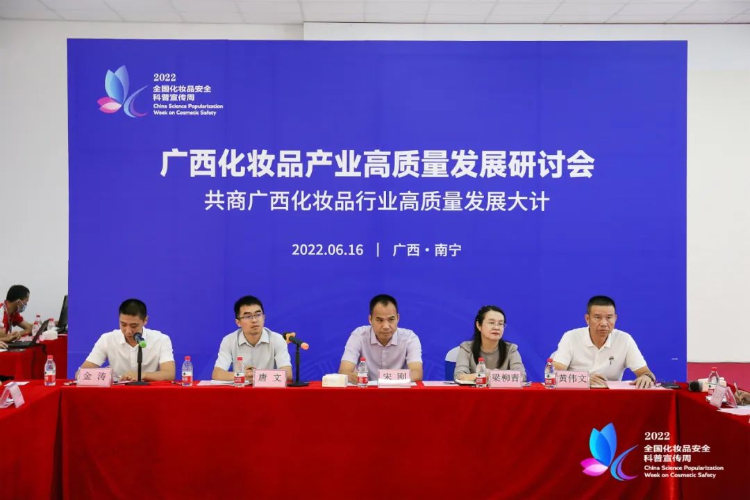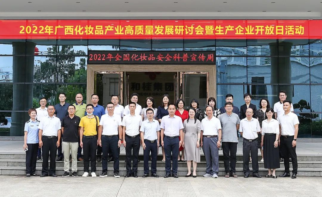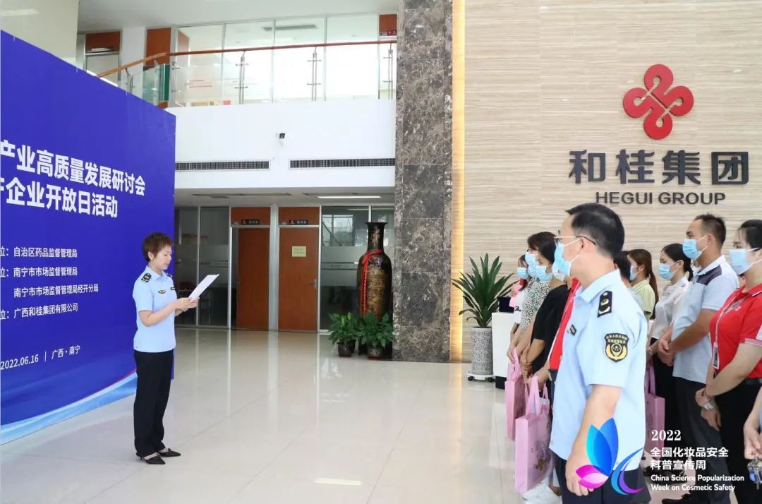 6月16日,廣西化妝品高質(zhì)量發(fā)展研討會(huì)暨生產(chǎn)企業(yè)開放日在和桂集團(tuán)舉行,作為2022年全國(guó)化妝品安全科普宣傳周廣西系列活動(dòng)之一,政府高度重視,社會(huì)廣泛關(guān)注。自治區(qū)藥品監(jiān)督管理局化妝品監(jiān)管處副處長(zhǎng)唐文,南寧市市場(chǎng)監(jiān)督管理局黨組成員、副局長(zhǎng)宋剛,自治區(qū)藥品監(jiān)管局南寧檢查分局局長(zhǎng)梁柳青,廣西化妝品協(xié)會(huì)會(huì)長(zhǎng)、廣西和桂集團(tuán)有限公司董事長(zhǎng)黃偉文出席會(huì)議,行業(yè)專家學(xué)者、企業(yè)負(fù)責(zé)人、媒體單位,通過政府平臺(tái)公開征集的近30位公眾代表參加活動(dòng)。研討會(huì)由南寧市市場(chǎng)監(jiān)督管理局經(jīng)開分局局長(zhǎng)金濤主持。