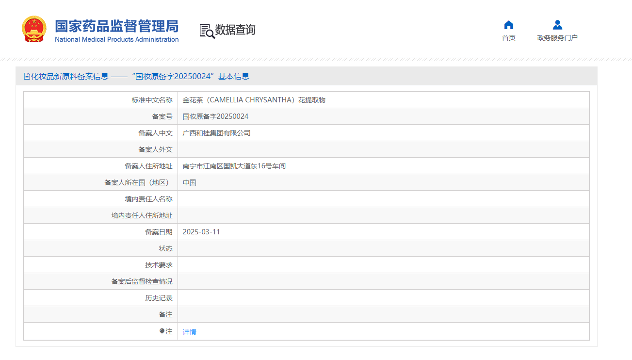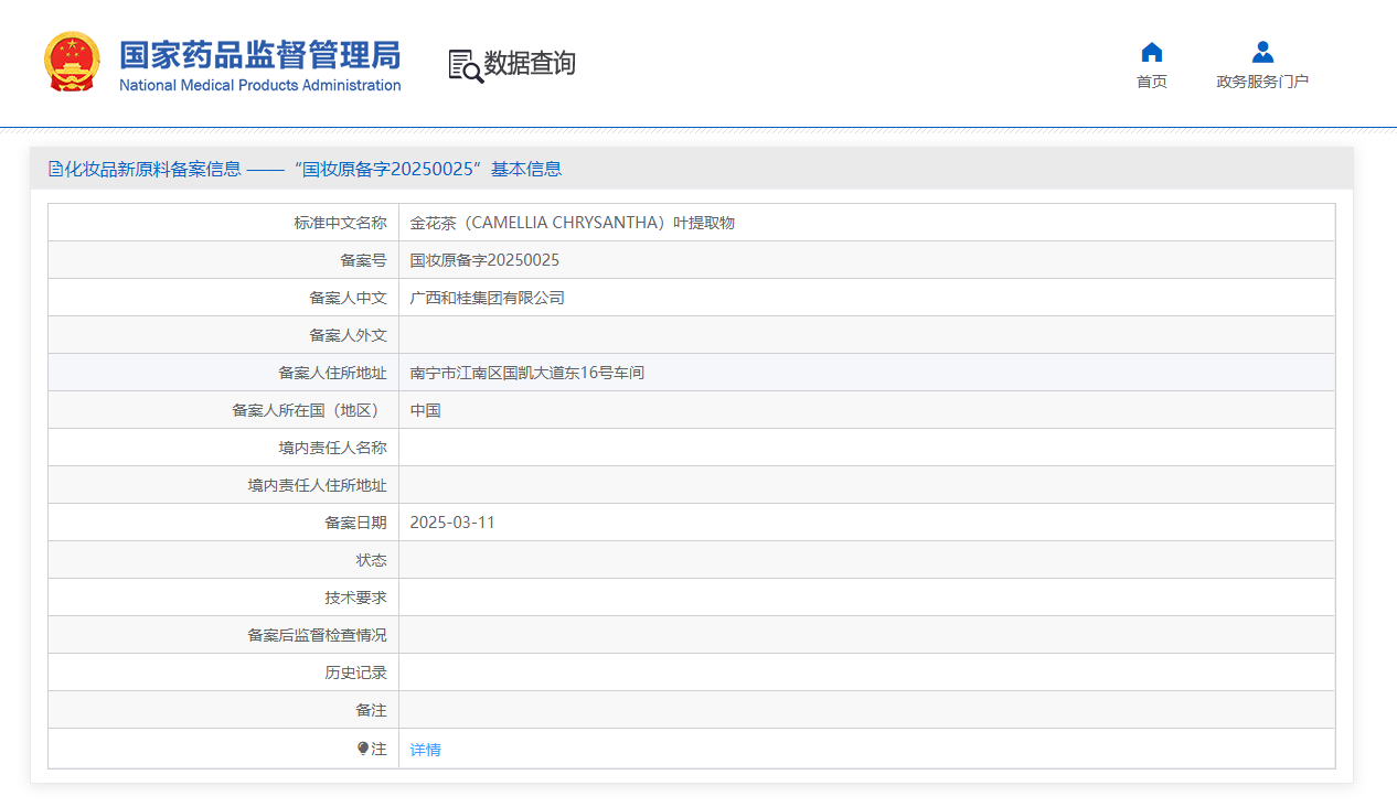 作為扎根廣西27年的民族企業(yè),和桂集團依托廣西豐富的資源優(yōu)勢,聚焦創(chuàng)新,就在3月中旬,和桂集團首創(chuàng)“一株植物,全效開發(fā)”模式,攻克花、葉活性成分差異提取技術壁壘,將金花茶花/葉的提取物成功備案,這廣西首次通過國家化妝品新原料備案,和桂集團也成為國內首家,將金花茶花和葉的提取物,作為化妝品新原料備案成功的廣西企業(yè)。我們通過科技創(chuàng)新實現(xiàn)資源價值最大化,為廣西特色產業(yè)升級注入核心動力?!?nbsp;和桂集團也將繼續(xù)積極發(fā)掘更多廣西特色原料,致力于為消費者帶來更多天然,安全,有效的日化產品。