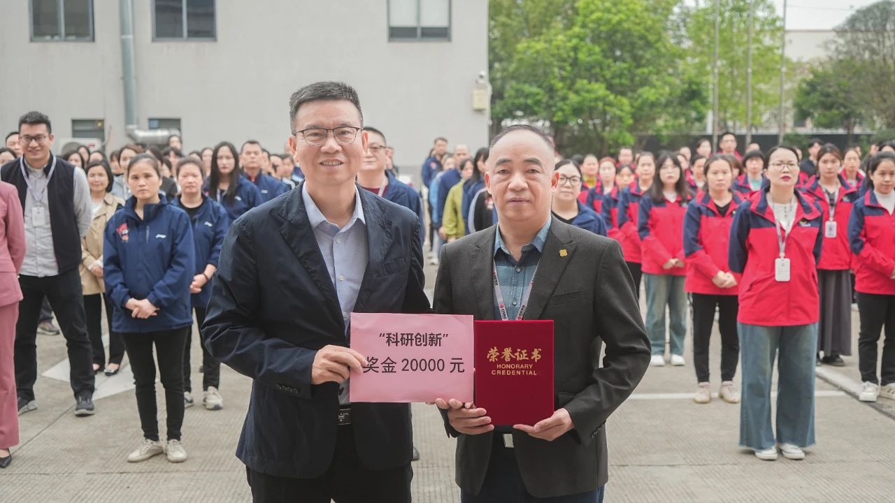 4月7日,和桂集團(tuán)在周一集團(tuán)晨會上舉行了科技創(chuàng)新表彰儀式,在全體員工的共同見證下,集團(tuán)董事長黃偉文為集團(tuán)副總裁楊天云頒發(fā)創(chuàng)新榮譽(yù)證書及獎金,表彰其團(tuán)隊在科研中作出的突出貢獻(xiàn)。